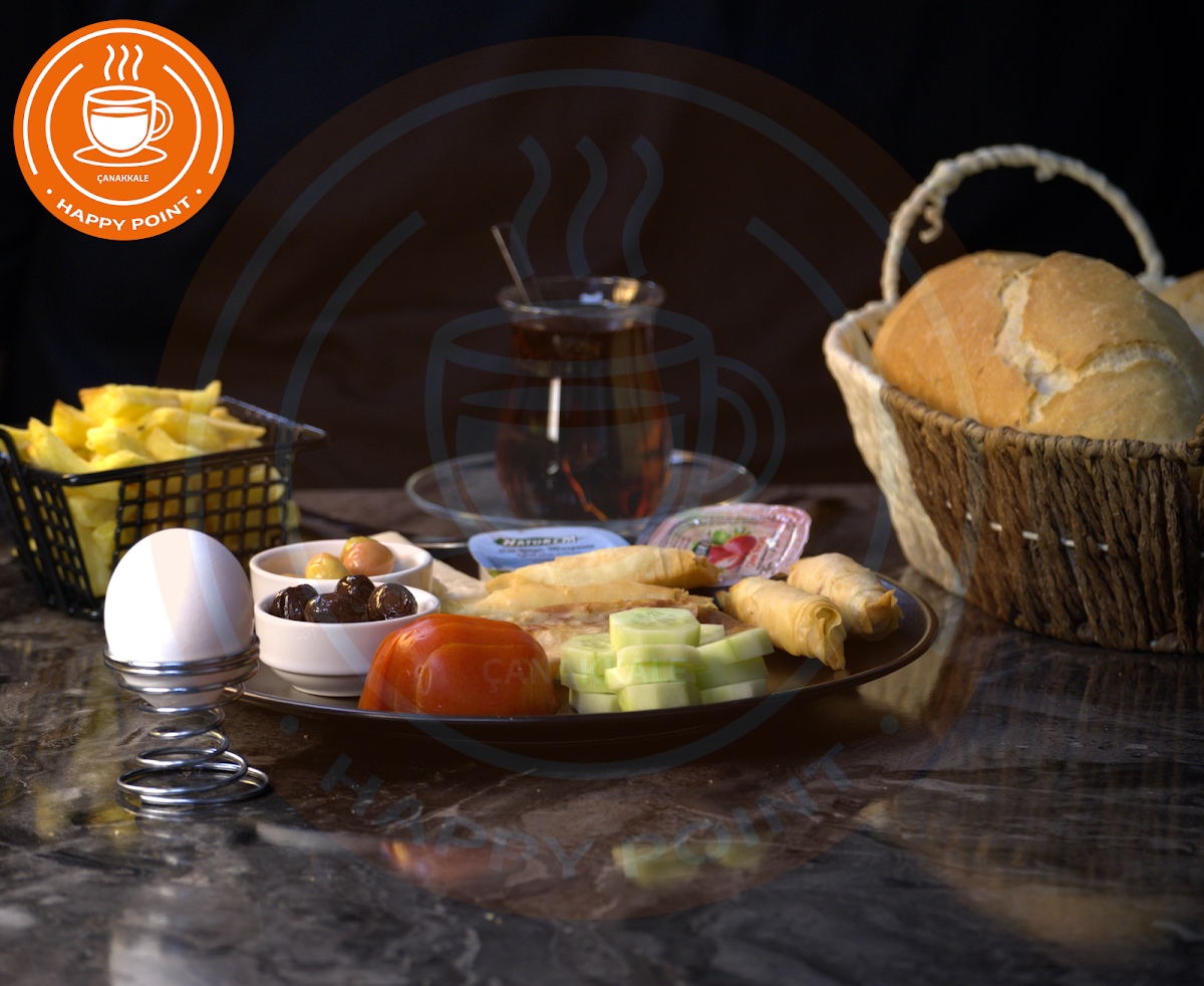 The menu at Happy Point Cafe offers an array of delicious options that promise to satisfy any craving. Start your day with their hearty breakfast platter, featuring a delightful combination of beyaz peynir (white cheese), siyah zeytin (black olives), and yeşil zeytin (green olives), complemented by çilek reçeli (strawberry jam), fresh butter, tomatoes, cucumbers, eggs, and a selection of delectable pastries such as paçanga böreği and sigara böreği. Each dish is beautifully presented, inviting you to indulge and savor each bite.
